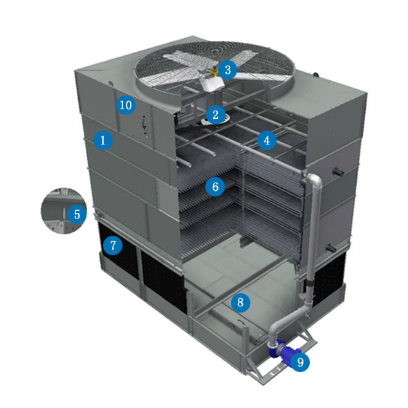 Fan cowl extensions allow for unobstructed airflow on the discharge side, which help ensure that the units are providing maximum capacity. When closed circuit cooling towers cannot be located above adjacent structures, fan cowl extensions will be necessary so that discharge air flows out of the tower properly and is not circulated back toward the air intake by the combination of wind pressure and adjacent structures.